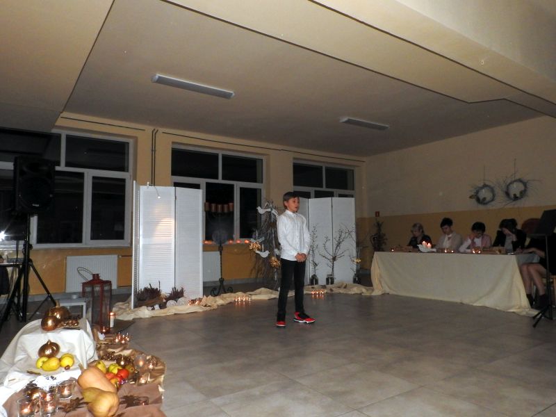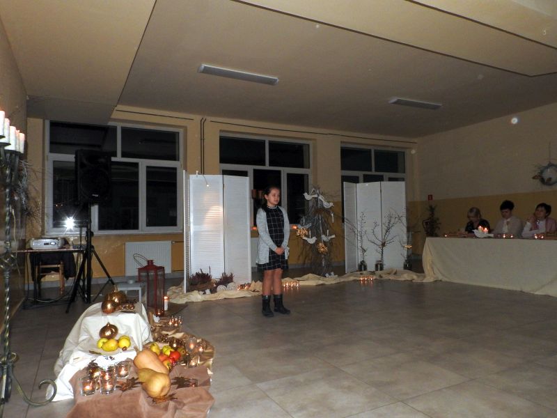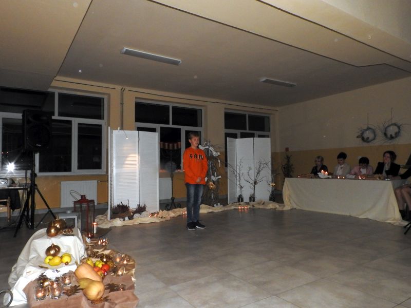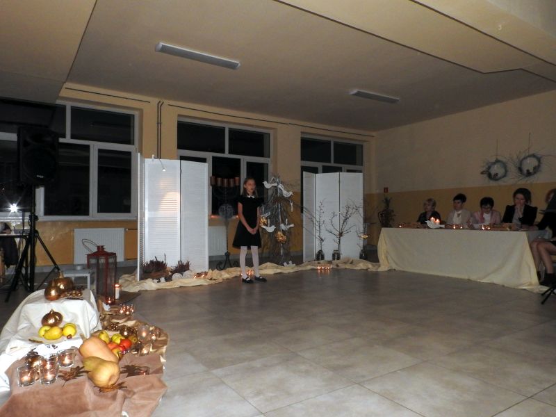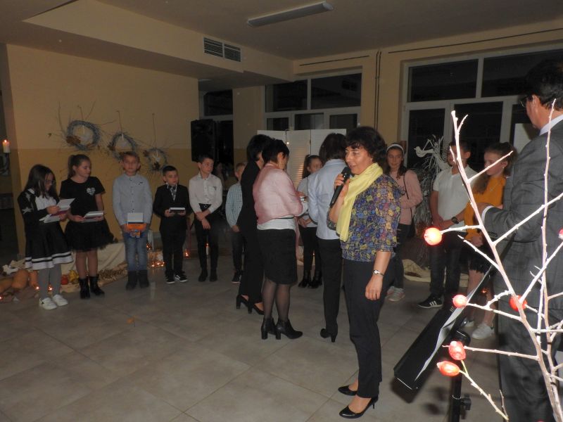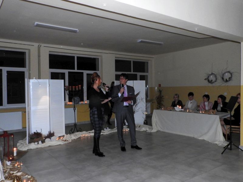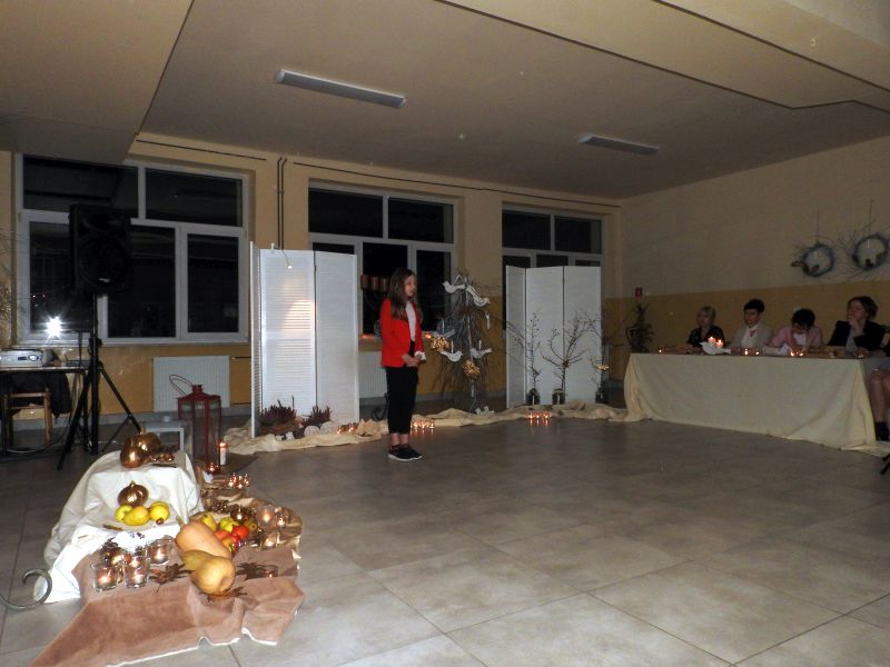 Piękną scenografię na ten wieczór opracowała i wykonała Pani Grażyna Cichoń, we współpracy z Magdaleną Pedyńską i Urszulą Żurawską. Do przygotowania konkursu włączyły się również panie: Beata Kołek oraz Monika Bednarska- Nowak.