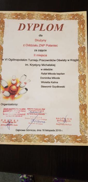 16 listopada w Dąbrowie Górniczej odbyła się VI Ogólnopolski Turniej Pracowników Oświaty w kręgle.