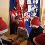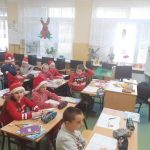 Od samego rana dało się wyczuć radosną atmosferę i szczególny klimat, a to za sprawą szanownego gościa, który miał się pojawić w murach szkoły i odwiedzić najgrzeczniejsze dzieci. W wielu zespołach klasowych uczniowie wraz z wychowawcami wymieniali się prezentami, a szkolne korytarze zalała fala czerwieni. Każdy, kto mógł, założył w tym dniu coś czerwonego, można więc było ujrzeć rozmaite mikołajowe akcenty: czapki, okulary, opaski z rogami renifera, czerwone sukienki, koszule czy sweterki.