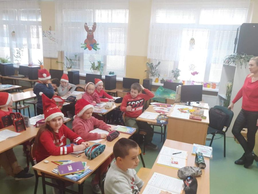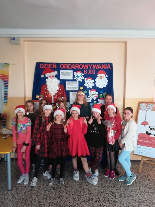 Od samego rana dało się wyczuć radosną atmosferę i szczególny klimat, a to za sprawą szanownego gościa, który miał się pojawić w murach szkoły i odwiedzić najgrzeczniejsze dzieci. W wielu zespołach klasowych uczniowie wraz z wychowawcami wymieniali się prezentami, a szkolne korytarze zalała fala czerwieni. Każdy, kto mógł, założył w tym dniu coś czerwonego, można więc było ujrzeć rozmaite mikołajowe akcenty: czapki, okulary, opaski z rogami renifera, czerwone sukienki, koszule czy sweterki.