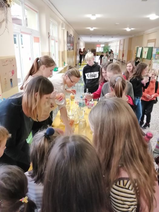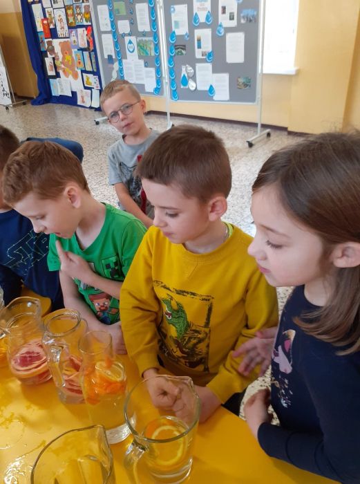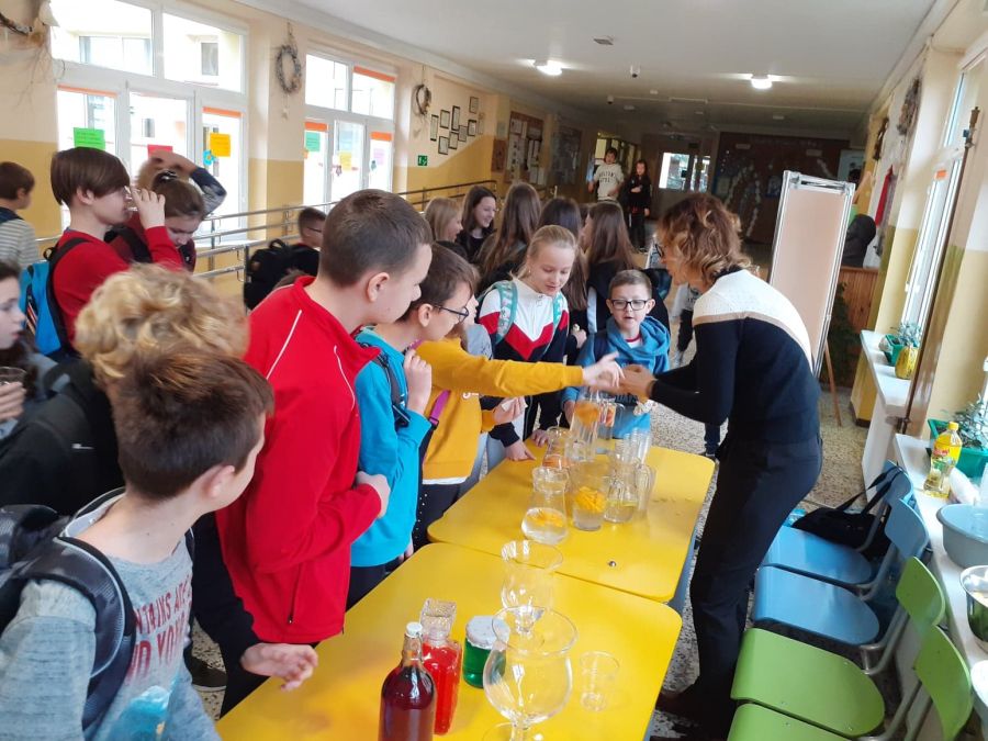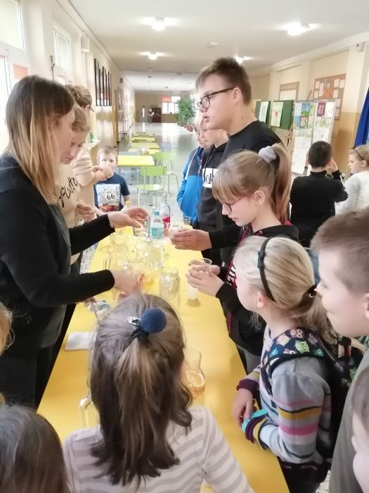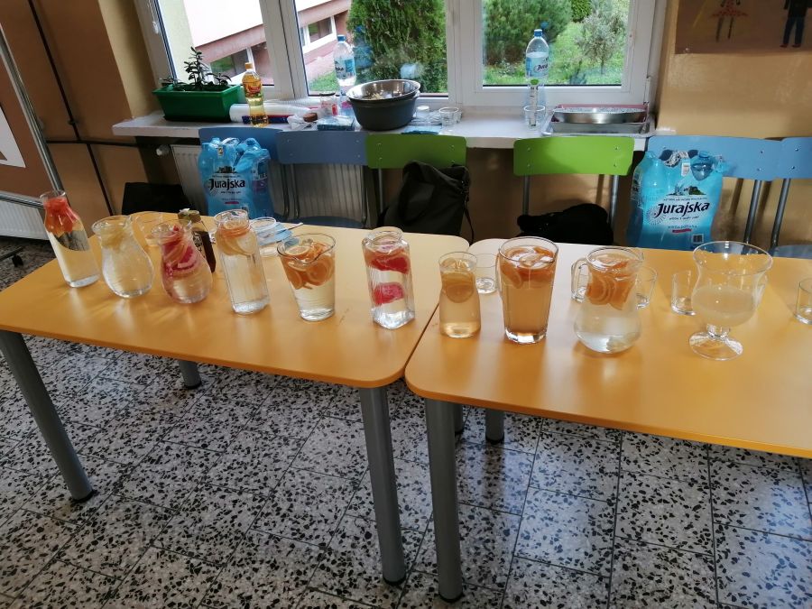 Dla uczniów i pracowników szkoły powstało stanowisko, na którym zainteresowani mogli skosztować wodę o różnych smakach. Degustacja ta była dużą atrakcją dla uczniów. Mogli oni napić się wód o różnych smakach, otrzymanych po dodaniu naturalnych składników tj. cytryna, miód, pomarańcza, grejpfruta, imbir, mięta, marchewka. Dużym zainteresowaniem cieszyła się też woda z kiszonej kapusty i kiszonych ogórków źródło wielu witamin niezbędnych w okresie jesienno-zimowym.