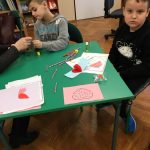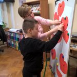 Dzieci wykonywały kartkę dla przyjaciela z miłym przekazem, składały serduszka z puzzli, rozmawiały o cechach dobrego przyjaciela, o tym, w jaki sposób okazujemy uczucia i jak ważne są one w naszym życiu.