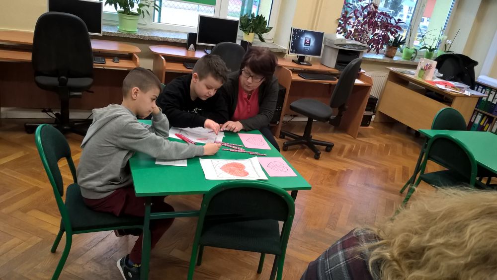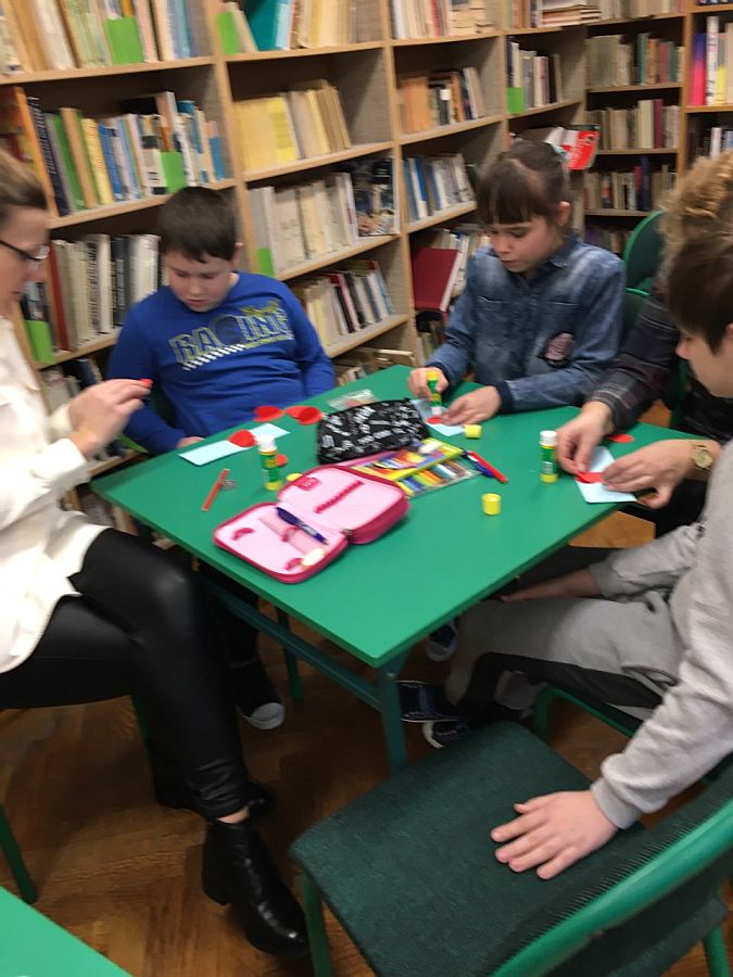 „Czytając bajki, poznajemy uczucia i rozmawiamy o nich” – pod takim hasłem Panie Ewa Basińska i Dorota Wójcik z Wojewódzkiej Biblioteki Pedagogicznej w Kielcach Filia w Staszowie przeprowadziły w naszej szkole zajęcia o uczuciach. Przyjaźń i czułość były tematem przewodnim podczas spotkania zorganizowanego przez Marzenę Chylę w Walentynki.