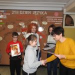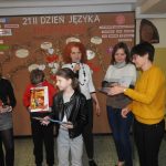 Podczas długich przerw w holu głównym szkoły uczniów i nauczycieli zaproszono do udziału w zabawach językowych pod hasłem: „Polski? Lubię to!”. Królowały „Polonistyczne memory”, „Polonistyczne boogle” i łamańce językowe, a drzewo na gazetce ozdobiły białe i czerwone serduszka z trudnymi polskimi wyrazami – do zapamiętania. Nagrodzono także zwycięzców konkursu „Z polszczyzną za pan brat” – pamiątkowe dyplomy oraz nagrody książkowe wręczyły im panie Marzena Abramczuk i Dominika Mikoda, wicedyrektorki szkoły.