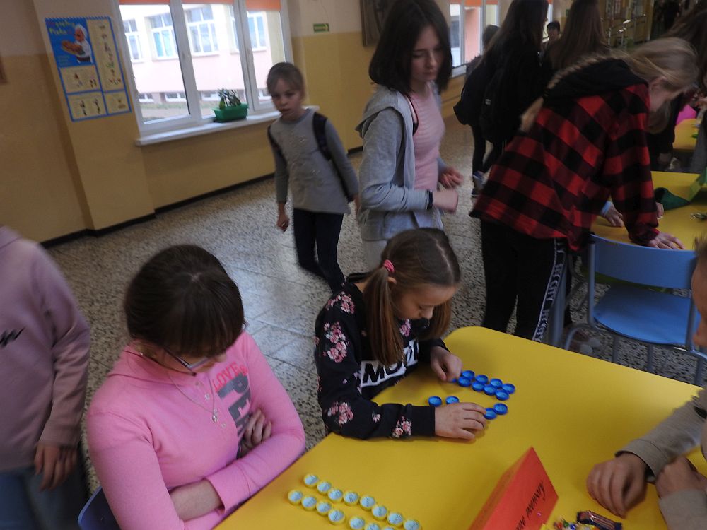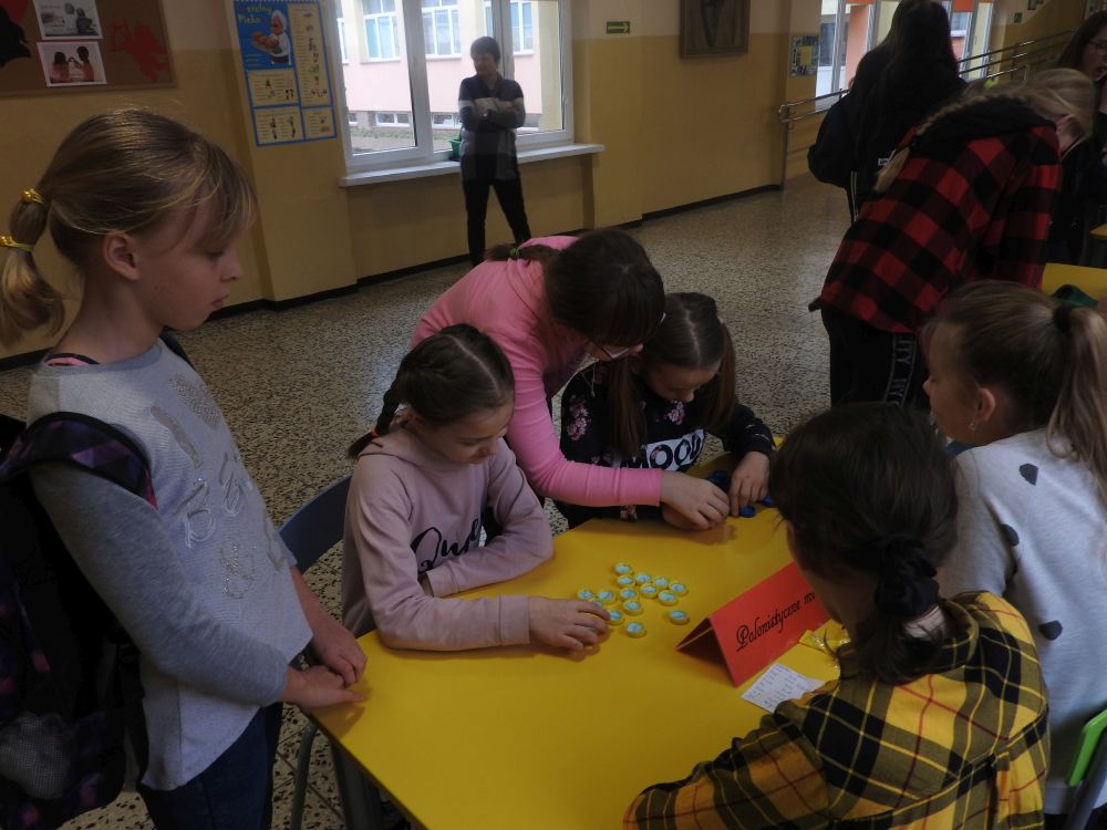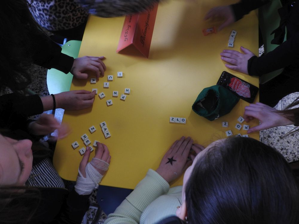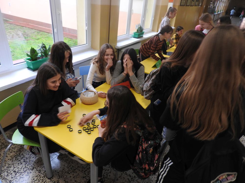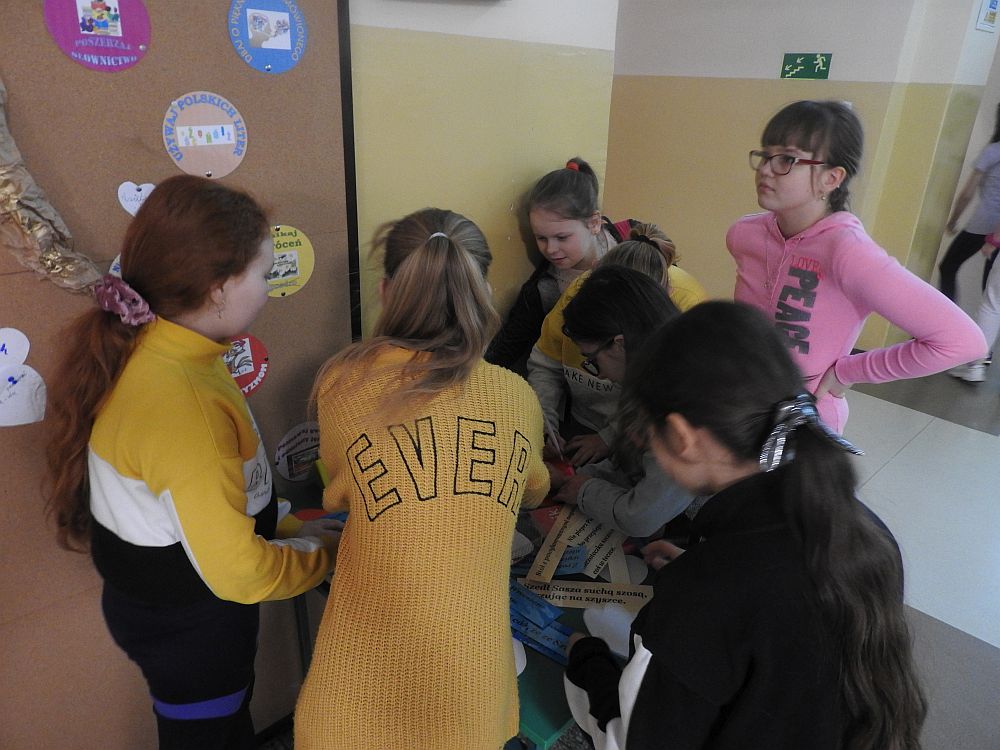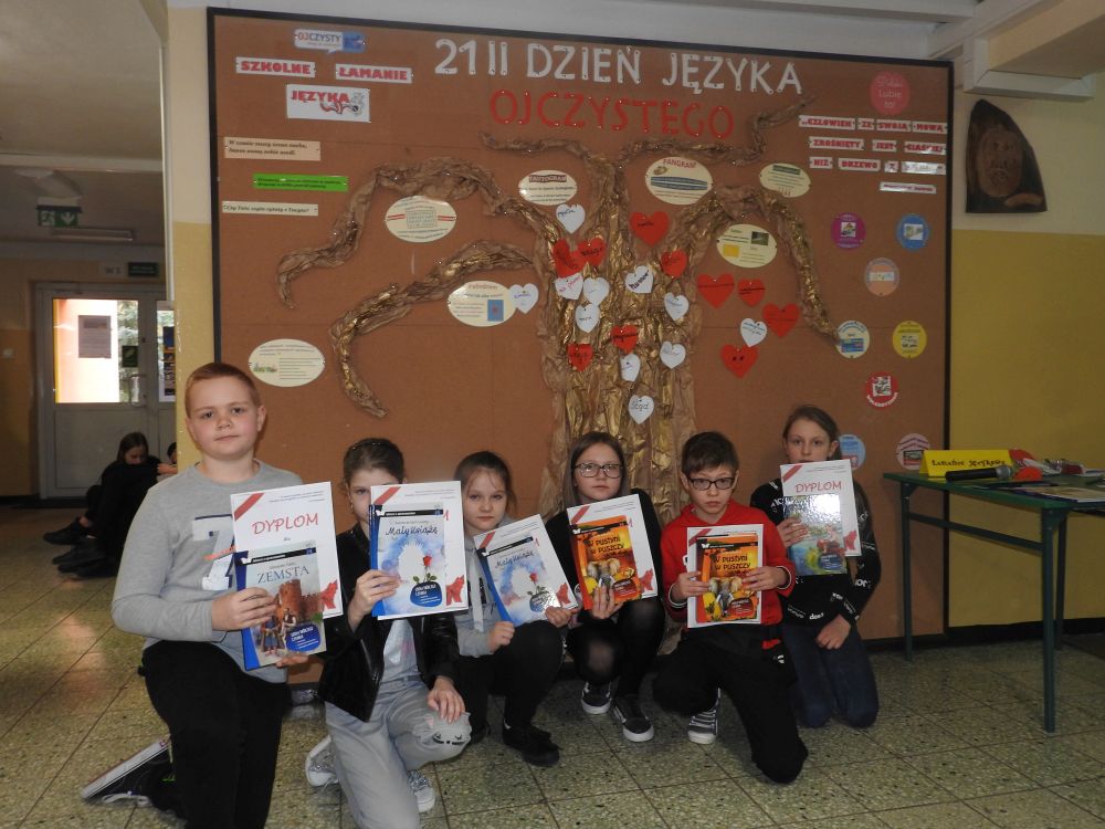 Podczas długich przerw w holu głównym szkoły uczniów i nauczycieli zaproszono do udziału w zabawach językowych pod hasłem: „Polski? Lubię to!”. Królowały „Polonistyczne memory”, „Polonistyczne boogle” i łamańce językowe, a drzewo na gazetce ozdobiły białe i czerwone serduszka z trudnymi polskimi wyrazami – do zapamiętania. Nagrodzono także zwycięzców konkursu „Z polszczyzną za pan brat” – pamiątkowe dyplomy oraz nagrody książkowe wręczyły im panie Marzena Abramczuk i Dominika Mikoda, wicedyrektorki szkoły.