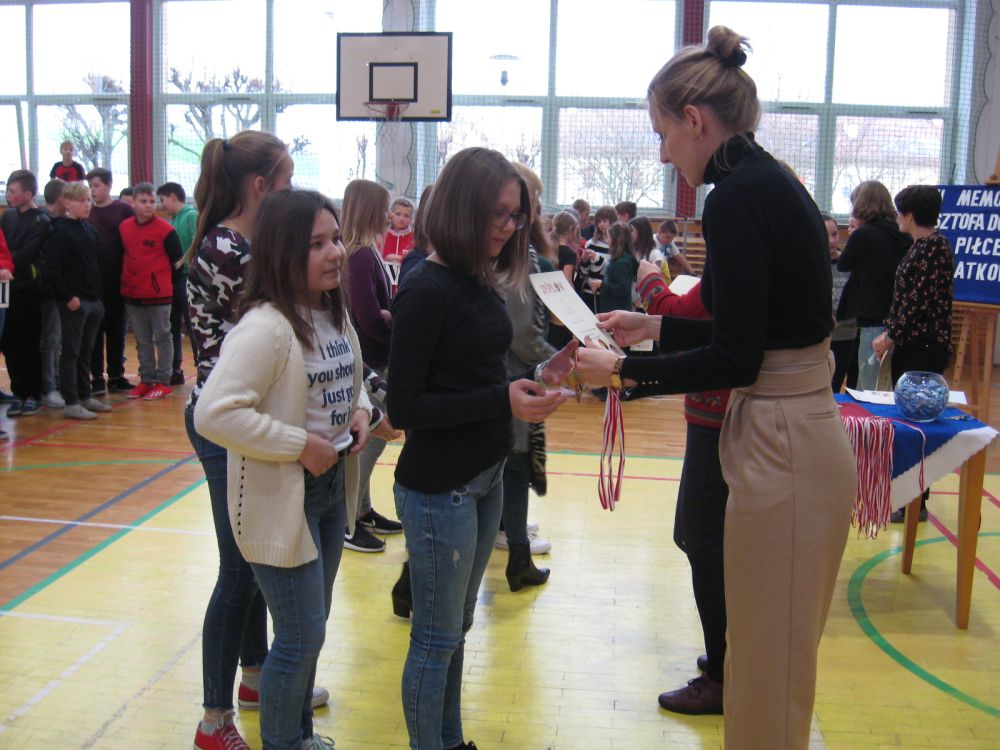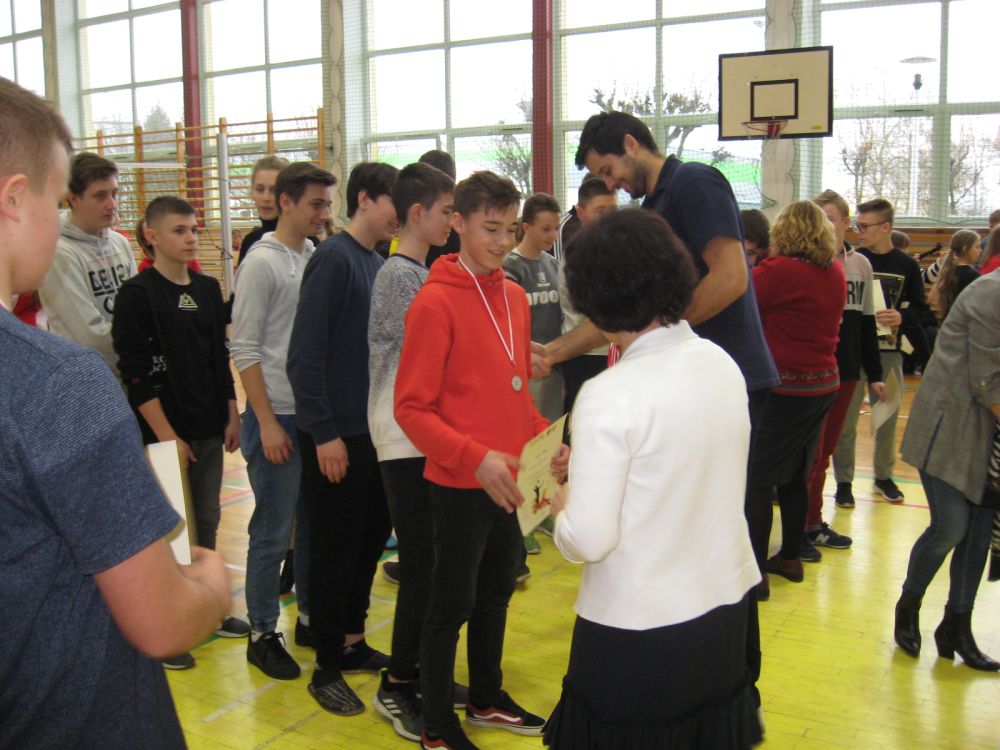 Podczas uroczystości zakończenia turnieju medale i dyplomy najlepszym zespołom wręczyli: p. Karolina Koper-Adamczak – dyrektor OSiR w Połańcu, p. Marzena Dobroch, p. Gabriela Zielińska – dyrektor szkoły, p. Marzena Abramczuk i p. Dominika Mikoda – wicedyrektorzy, p. Marcin Golonka i p. Michał Roguz – przedstawiciele MKS Czarni Połaniec. Układ taneczny zaprezentowały dziewczęta z klasy VII cd.
