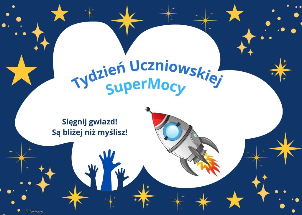 Zgodnie z ideą tegorocznej edycji projektu wszyscy wspólnie „polecieliśmy” w kosmos i sięgnęliśmy gwiazd. Podczas Tygodnia Uczniowskiej SuperMocy nie zabrakło różnych atrakcji i interesujących zajęć. Powstały rakiety i gwiazdy supermocy, które przystroiły wnętrze sali lekcyjnej, tworząc klasowe niebo pełne gwiazd i zmierzających ku nim pojazdów kosmicznych. W ramach przedsięwzięcia dzieci miały możliwość zastanowić się, jakie posiadają predyspozycje czy umiejętności, a także zaopatrzyć się w „moc”, której potrzebują, co wywołało szczery uśmiech na niejednej twarzy.