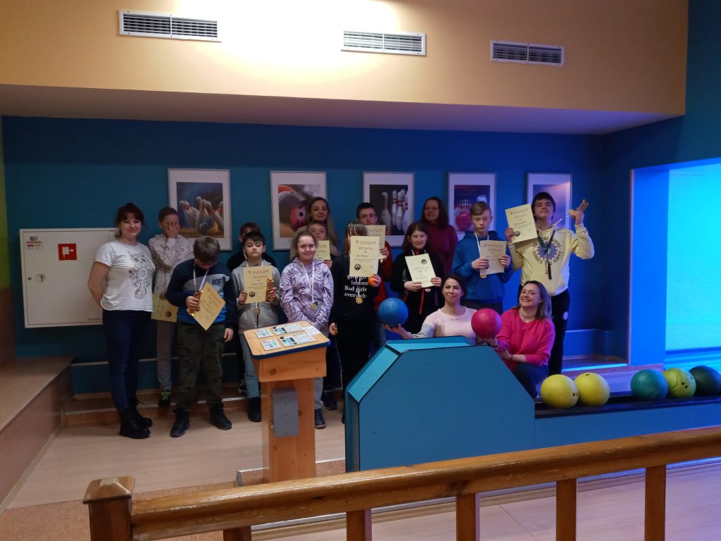Pani Wioletta Kalina przedstawiła nam zasady gry w kręgle po czym mogliśmy przystąpić do rozgrywek. To była gra pełna emocji, skupienia oraz zdrowej rywalizacji. W czasie przerwy mogliśmy usiąść przy wspólnym stole, poczęstować się słodkimi przekąskami, porozmawiać i pograć w gry planszowe. Tego dnia nie było wygranych ani przegranych! Wspólnie spędzony czas pozwolił nam na nawiązanie nowych znajomości i rozwijanie zdrowej rywalizacji sportowej. Na koniec, każdy uczestnik dostał dyplom, medal i słodką niespodziankę. Ten dzień na długo zostanie w naszych wspomnieniach.