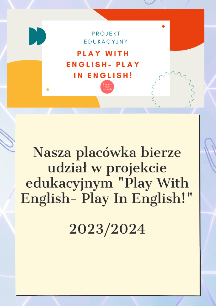 Oddział przedszkolny w bieżącym roku szkolnym bierze udział w projekcie edukacyjnym „PLAY WITH ENGLISH – PLAY IN ENGLISH”.