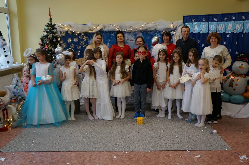 Spotkanie rozpoczęło się powitaniem przez panią Roksanę Nowak pani dyrektor, gości, wychowawców, rodziców a przede wszystkim dzieci, które zostały przyjęte do grona radosnych świetlików i przedstawicieli innych klas. Po krótkiej zabawie ruchowej uczniowie klasy trzeciej opowiedziały, dlaczego chętnie przychodzą na świetlicę. Wymieniły wiele powodów: „W świetlicy jest bardzo ciekawie, w świetlicy czas płynie zabawniej. Kto często przebywa w świetlicy, nie snuje się sam po ulicy. Tu czeka nas przygód wiele, tu wokół są przyjaciele”. Zwrócili też uwagę, jak wiele rzeczy można tu robić: bawić się w teatr, malować, recytować czy tańczyć oraz odrabiać zadania. Zachęcili do wspólnego spędzania czasu. Następnie nauczycielka świetlicy wprowadziła wszystkich w tematykę spotkania związaną ze świętami Bożego Narodzenia i zaprosiła na przedstawienie, które rozpoczęła scenka z Panią Zimą, śnieżynkami , które wykonały zjawiskowy taniec. Potem była rozmowa dzieci o atrakcjach związanych z obecną pora roku i wspólny śpiew piosenki „Pada śnieg”. W kolejnych scenkach aniołki tańczyły, a diabełki próbowały je przegonić. Potem wspólnie słuchały tego, co im powiedział Mikołaj i na jego prośbę wykonały pastorałkę „Świeć gwiazdeczko mała, świeć”. Po pożegnaniu z ulubionym przez dzieci świętym dzieci przeszły test gotowości świetlicowej i odpowiadały na pytania prowadzącej dotyczące prawidłowego zachowania się w świetlicy. Świetnie bawiły się również podczas odgadywania zagadek na temat tradycji świątecznych oraz znajomości szkoły. Na koniec w obecności pani Małgorzaty Sokołowskiej złożyły, po pozytywnym zaliczeniu wszystkich zadań przysięgę, trzymając prawą rękę na sercu. Ślubowały być zawsze wesołym, uśmiechniętym i koleżeńskim, dbać o bezpieczeństwo własne i innych, zachowywać porządek w swoim otoczeniu, chętnie brać udział w zajęciach, używać zwrotów grzecznościowych, uczyć się, bawić i szanować opiekunów w świetlicy. Po akcie pasowania dokonanym przez panią dyrektor na pamiątkę uroczystości każdy otrzymał drobny, słodki upominek. Pani Roksana Nowak również pogratulowała nowo przyjętym dzieciom, podziękowała za przybycie oraz pożegnała wszystkich.
