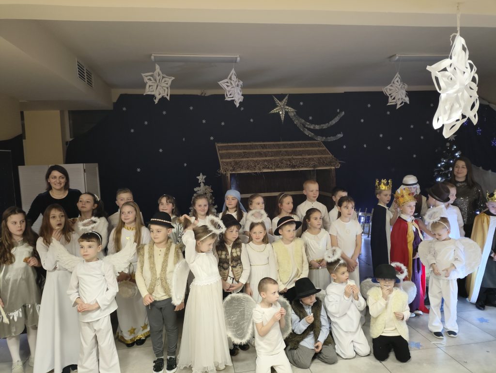 W naszej szkole dzieci z oddziału przedszkolnego oraz uczniowie z klasy 2”e” przygotowali wyjątkowe przedstawienie artystyczne – Jasełka. 20 grudnia o godzinie 17.30 do szkoły przybyli wszyscy zaproszeni goście. Wieczór jasełkowy wprawił uczestników spotkania w prawdziwie świąteczny nastrój, była to dla wszystkich lekcja zadumy i refleksji. Wzruszeni rodzice mogli zachwycić się publicznym występem swoich pociech. Spotkanie jasełkowe stało się również okazją do wzmacniania więzi między uczniami, rodzicami, nauczycielami i zaproszonymi gośćmi.