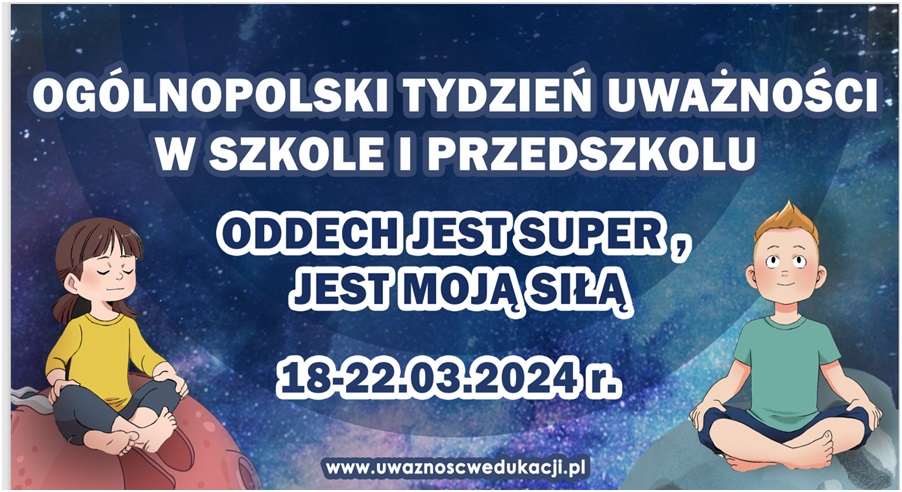 W piątym dniu Ogólnopolskiego Tygodnia Uważności świadomego oddechu doświadczały dzieci z grupy przedszkolnej Szkoły Podstawowej im. Tadeusza Kościuszki w Połańcu. Wraz ze swoim wychowawcą, Karoliną Łukaszek, poznały oddech Kosmicznego Ślimaka, obserwowały sygnały płynące z ciała, uczestniczyły w zabawach na odreagowanie, które sprawiły im mnóstwo radości. Klasa 2c zorganizowała piknik, podczas którego dzieci doświadczały uważności na zmysły, a świetliczaki przeprowadzały uważne eksperymenty oraz słuchały bajek wyciszających w świetlicowym kąciku uważności. Niektórzy uczniowie wybrali się natomiast na wiosenny spacer, podczas którego obserwowali budzącą się do życia przyrodę, słuchali śpiewu ptaków i zauważali płynące po niebie obłoki. Wszystkie klasy biorące udział w Ogólnopolskim Tygodniu Uważności otrzymały pamiątkowe dyplomy.