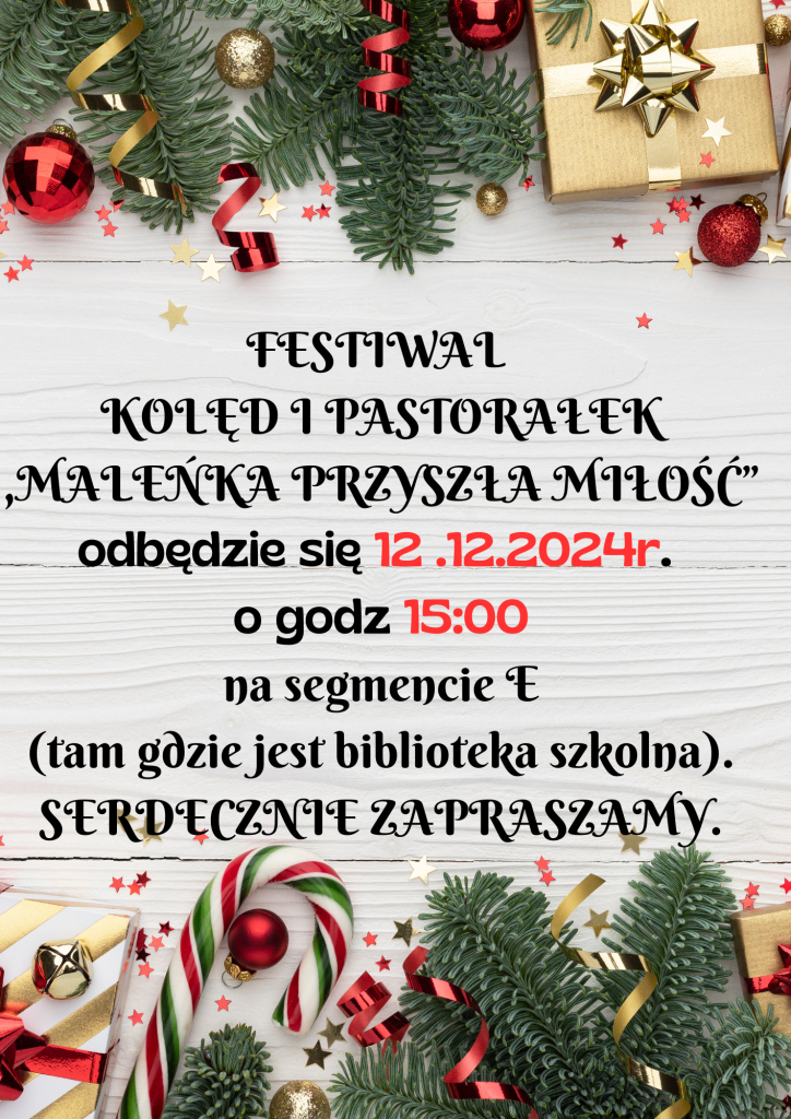 Chcemy aby Festiwal był naszym wspólnym kolędowaniem, dlatego prosimy przygotowanie uczniów do nie wychodzenia podczas występów innych uczestników.